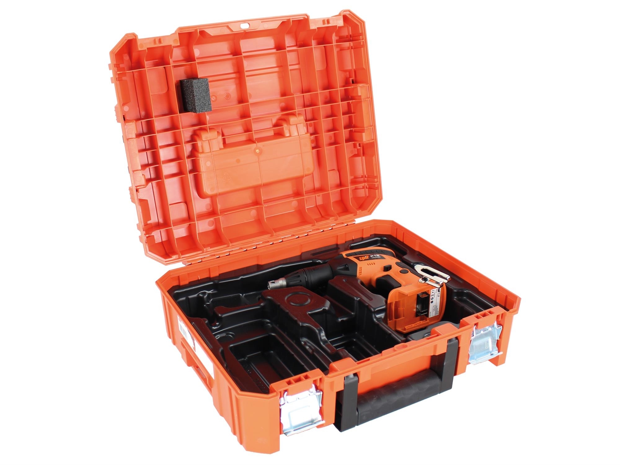 Sehr leichter und handlicher Akku-Trockenbauschrauber aus dem Hause SPIT. Geliefert wird der Schrauber im Koffer. Ein Magazinvorsatz, Akkus und Ladegerät sind separat erhältlich.