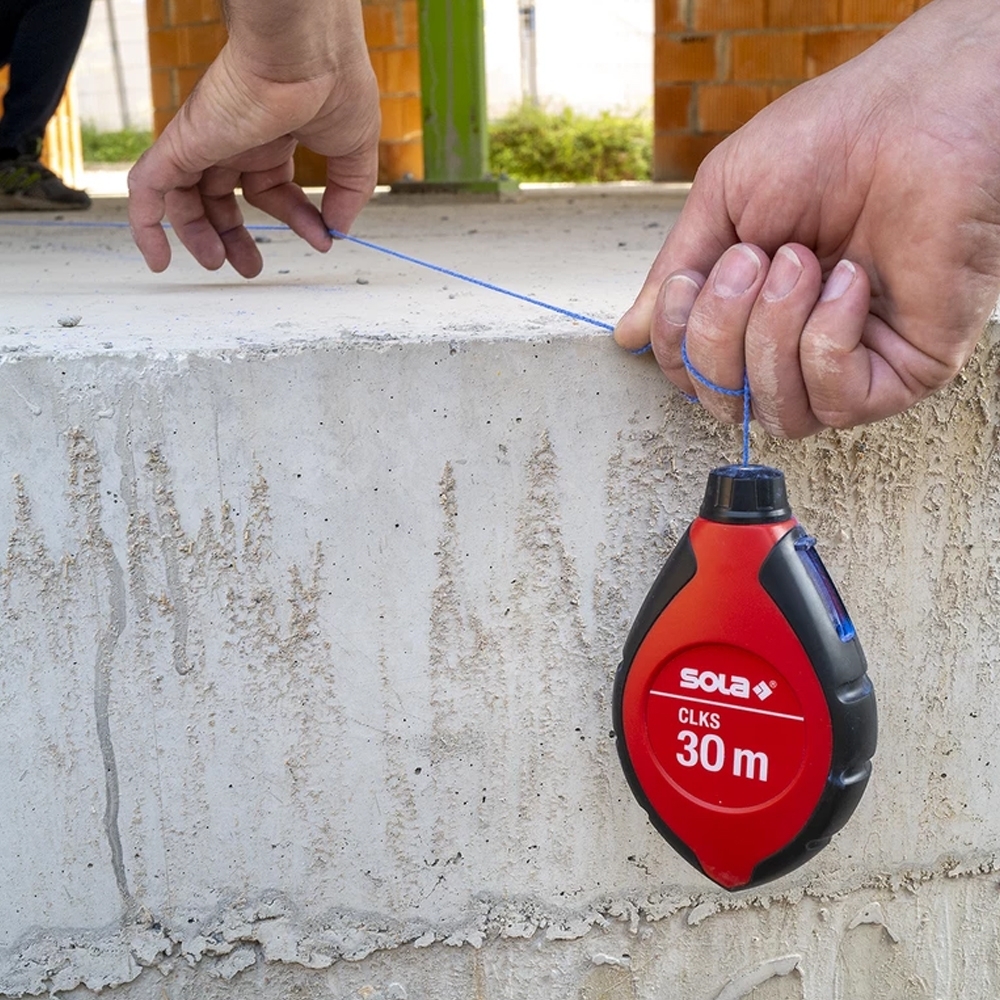 Die Schlagschnur bzw. Markierschnur ist für viele Handwerker wie Maurer, Trockenbauer oder Fliesenleger ein unverzichtbares Hilfsmittel zum Markieren von geraden Linien und Strecken mit Kreidepulver. Das neue CLKS Schlagschnurgerät von SOLA ist ein leichtes, robustes Kunststoff-Schlagschnurgerät mit einem Getriebe mit 6:1 Übersetzung, welches sich hervorragend für den täglichen Einsatz im Innenausbau oder auch Holzbau eignet.