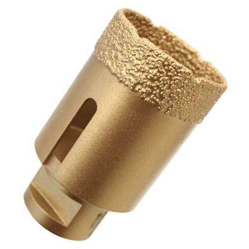 Vakuumbeschichtete Diamantbohrkrone zur Anwendung im professionellen Bereich mit dem Winkelschleifer. Die Bohrkrone ist mit jedem Winkelschleifer mit M14 Aufnahme kompatibel.